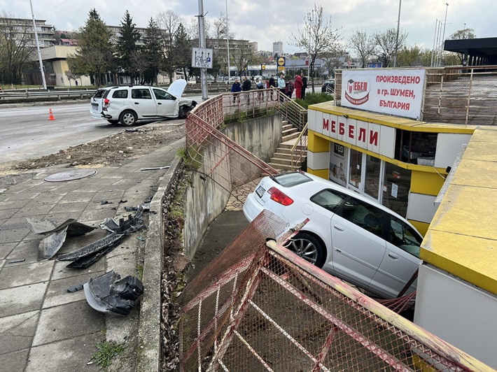 Сигнал за ПТП на бул. “Симеон Велики” до магазин Биохимия в града е постъпил в дежурната на ОДМВР-Шумен, съобщиха от пресцентъра на полицията. Съобщено е, че са се ударили два автомобила, като единият след сблъсъка е пресякъл тротоара, смачкал металната ограда, което го е спряло да не влезе в мебелния магазин. Към инцидента са насочени секипи на полиция, пожарна и спешна помощ. Трима души са закарани за преглед в болницата. Водачите са тествани за алкохол, пробите им са отрицателни. Изчаква се състоянието на откараните за преглед в болницата, допълниха от пресцентъра на ОДМВР.